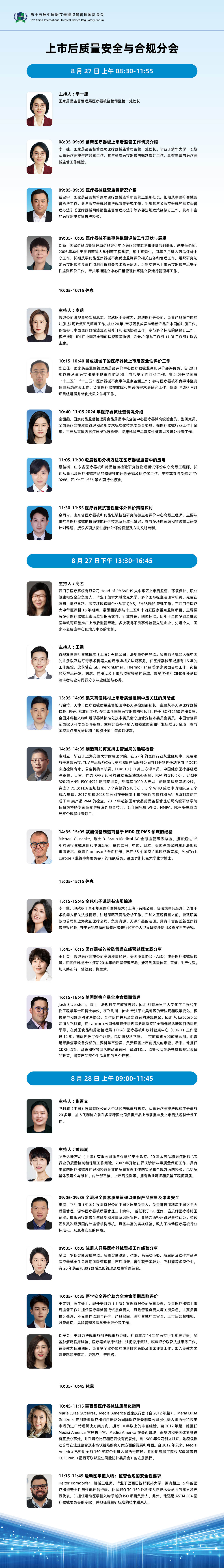 第十五届中国医疗器械监督管理国际会议(CIMDR)分会日程