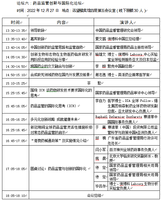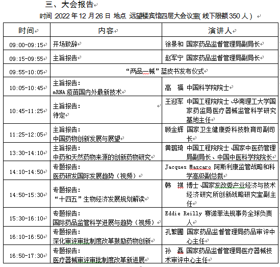 因疫情原因,原定于在北京会议中心线下召开的第六届中国药品监管科学大会将改为2022年12月25日-27日在北京远望楼宾馆线上线下相结合的形式召开。