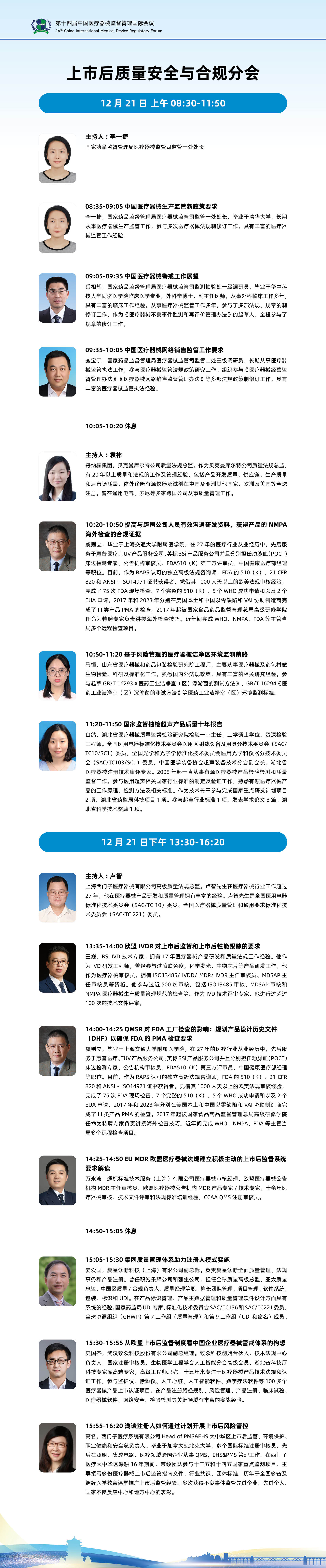 第十四届中国医疗器械监督管理国际会议(CIMDR)上市后质量安全与合规分会日程