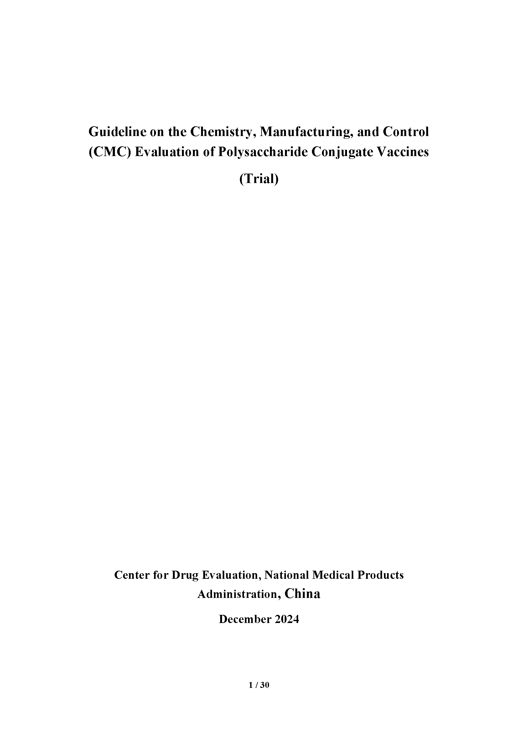Guideline on the Chemistry, Manufacturing, and Control (CMC) Evaluation of Polysaccharide Conjugate Vaccines (Trial)
