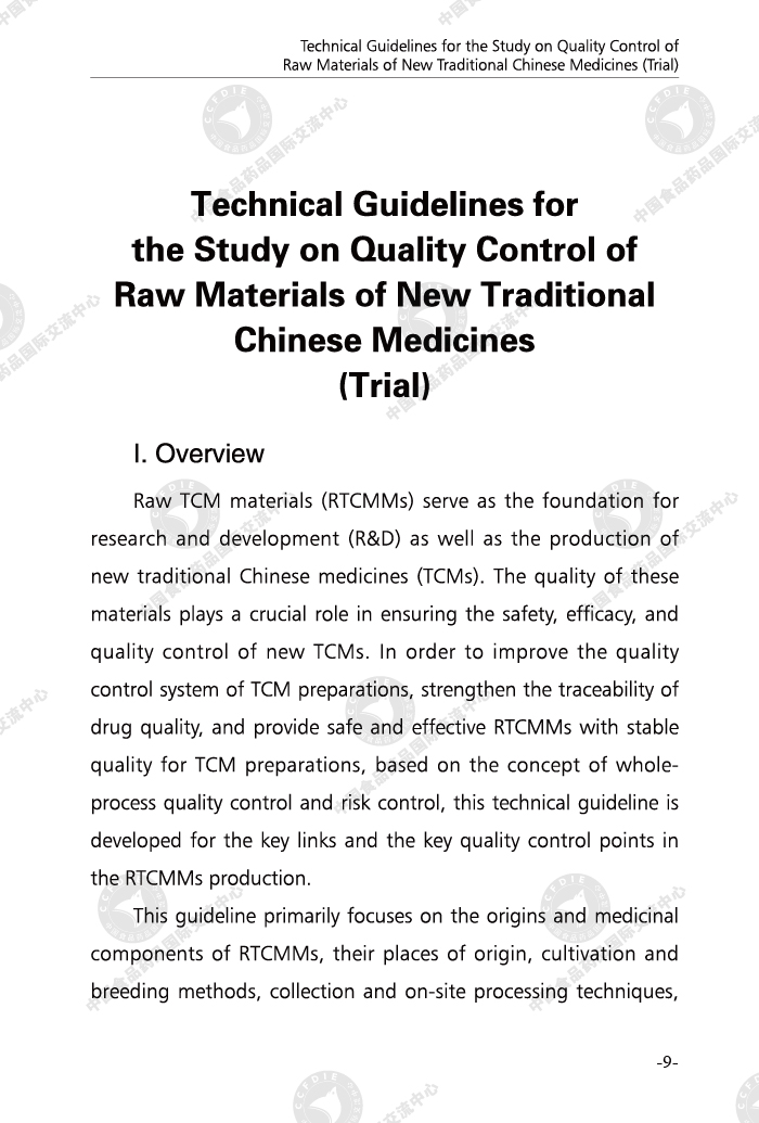 Technical Guidelines for the Study on Quality Control of Raw Materials of New Traditional Chinese Medicines (Trial) (Bilingual Edition)