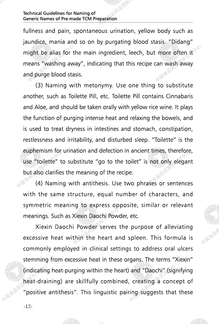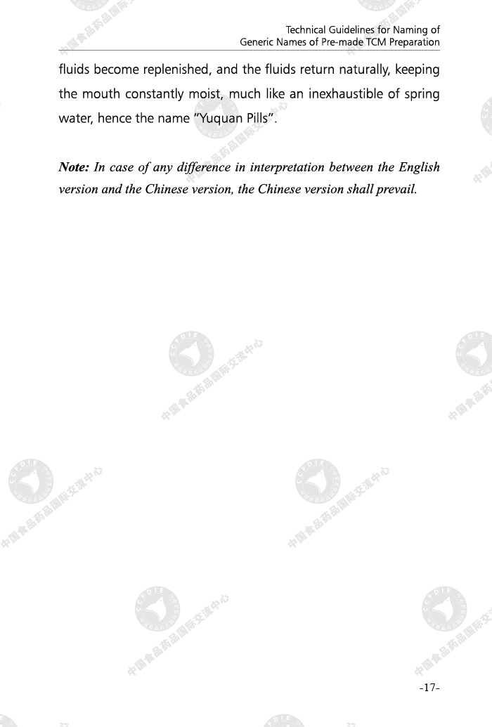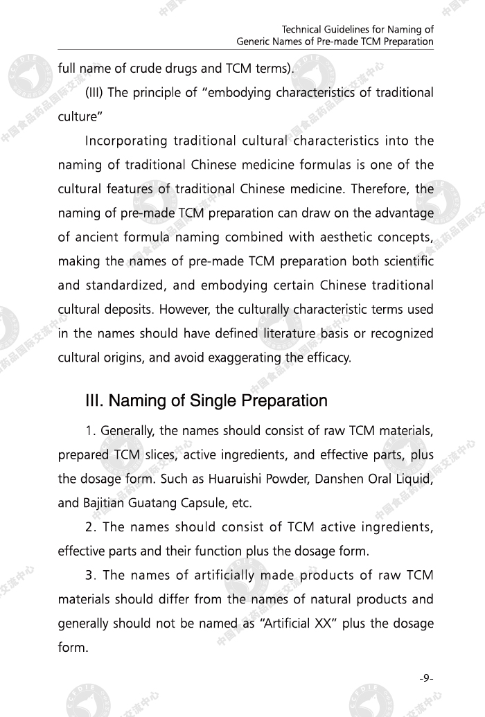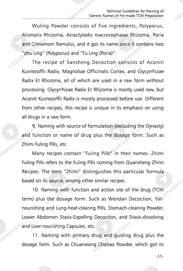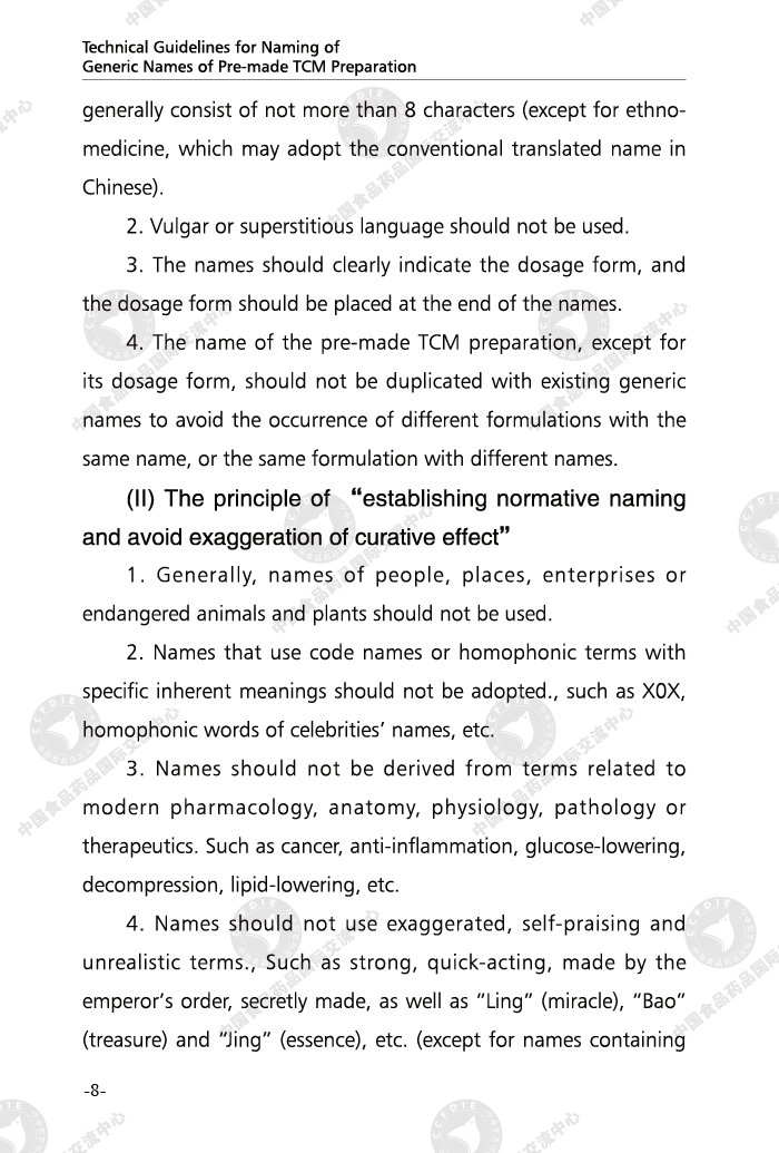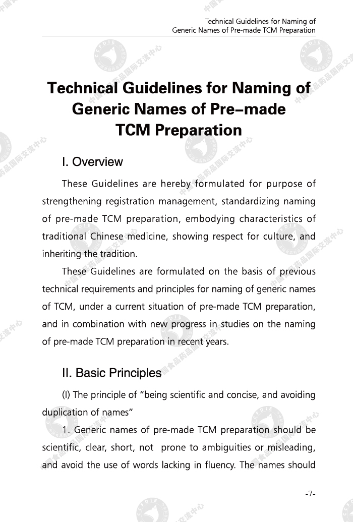 Technical Guidelines for Naming of Generic Names of Pre-made TCM Preparation (Bilingual Edition)