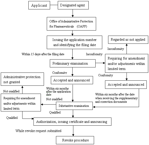 Diagram of the examination and approval procedure of administrative protection for Pharmaceuticals