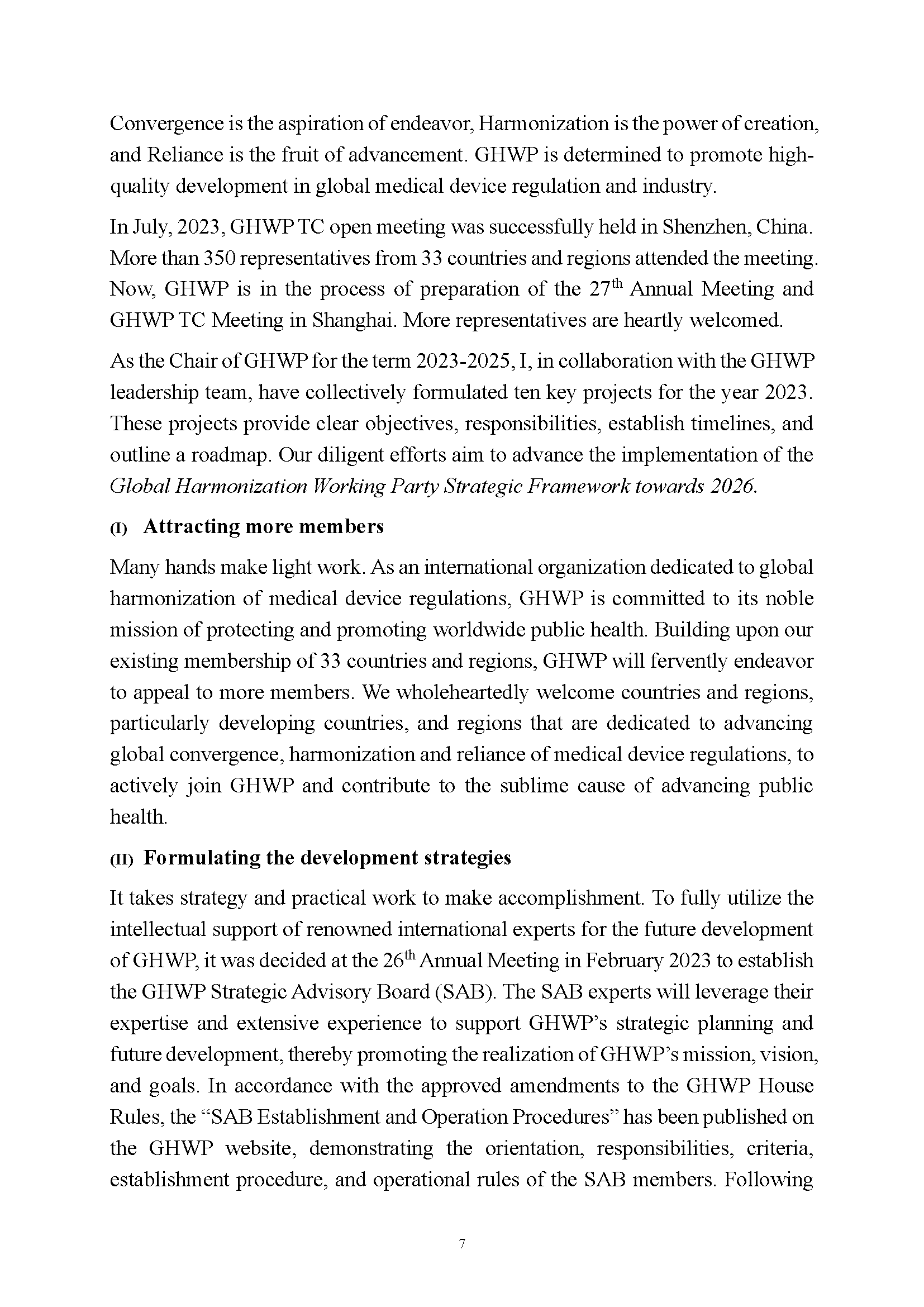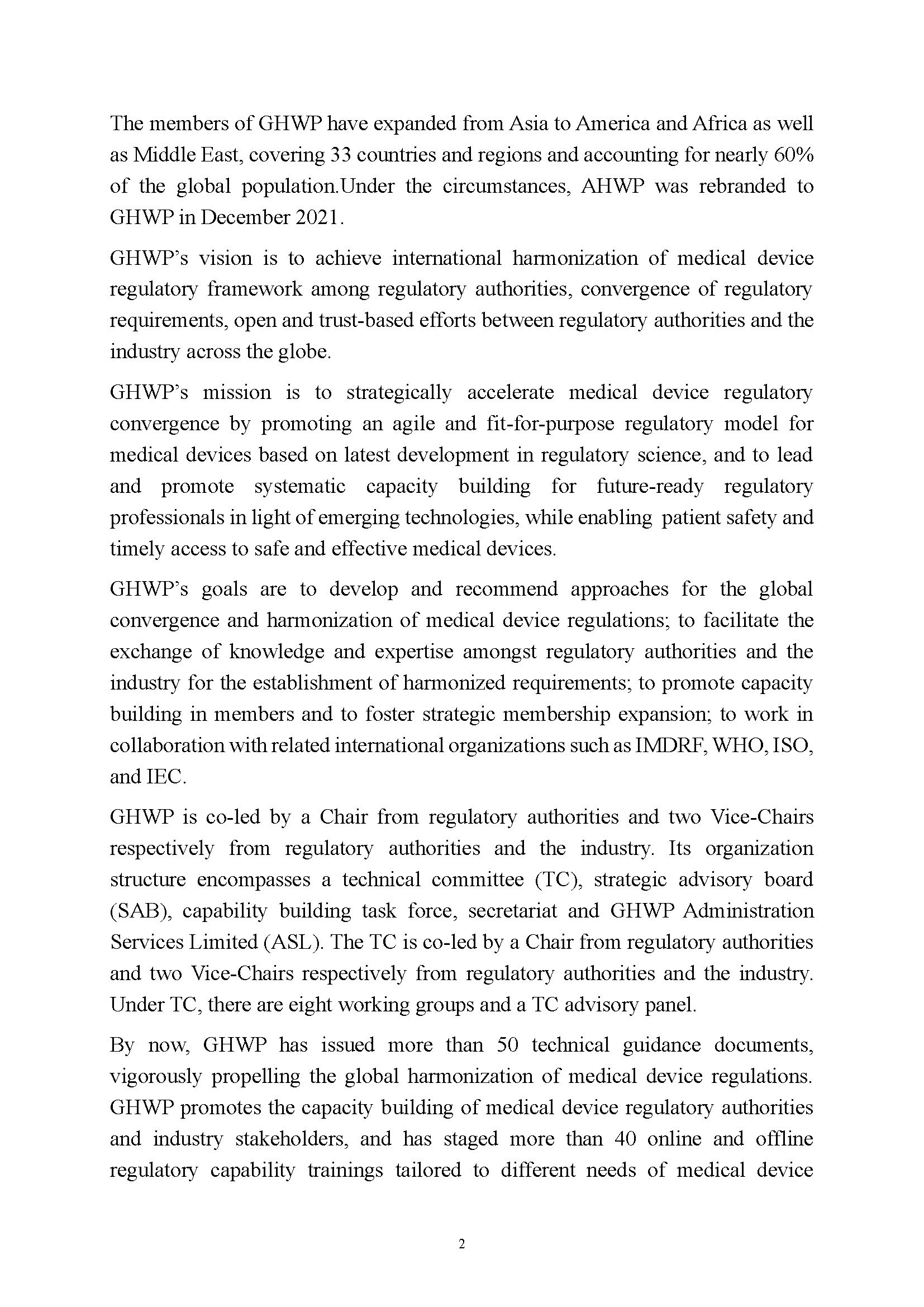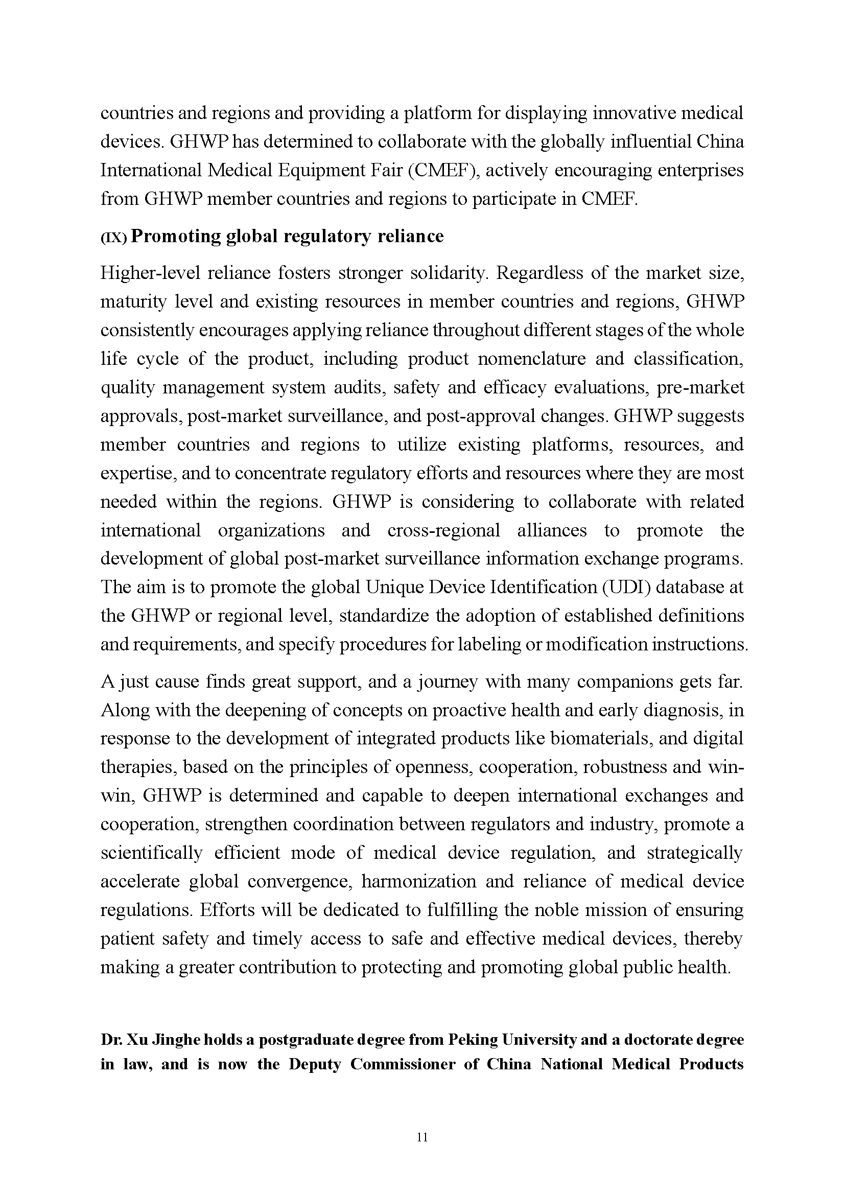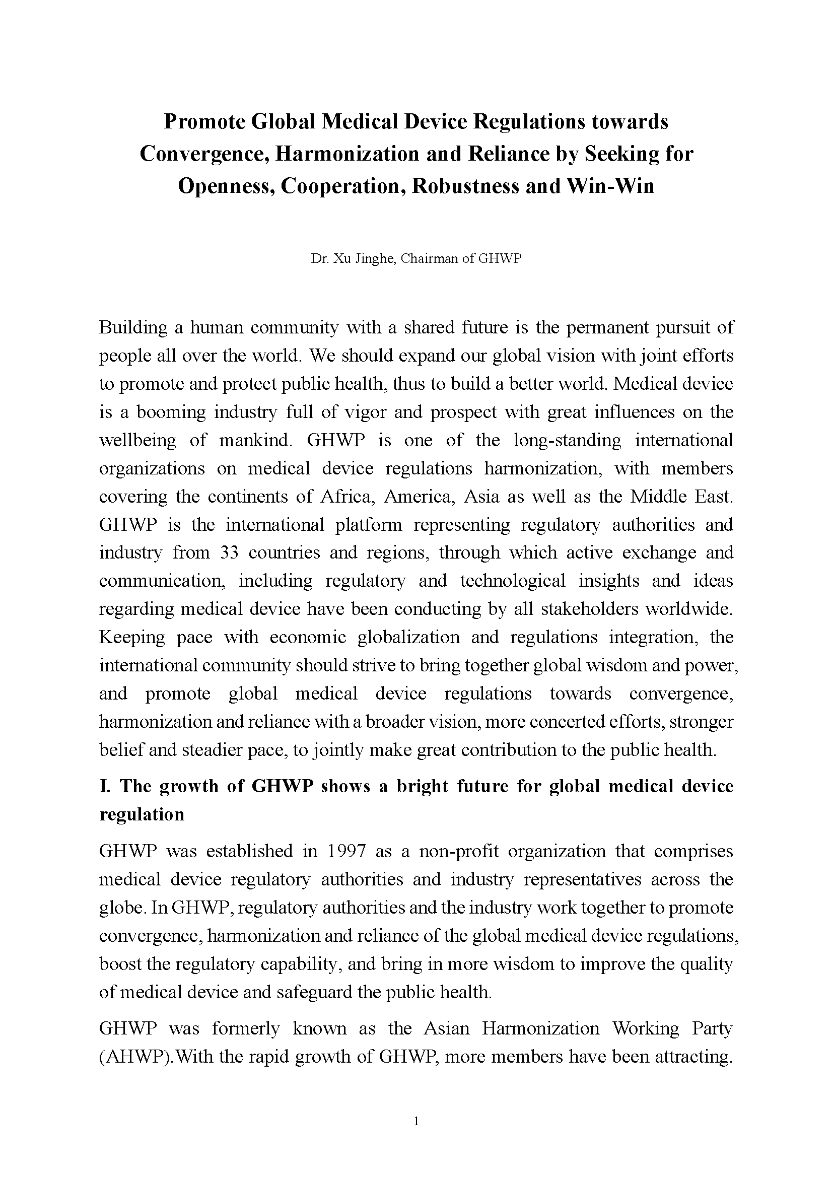 Article by the GHWP Chair Dr. Xu "Promote Global Medical Device Regulations towards Convergence, Harmonization and Reliance by Seeking for Openness, Cooperation, Robustness and Win-Win"
